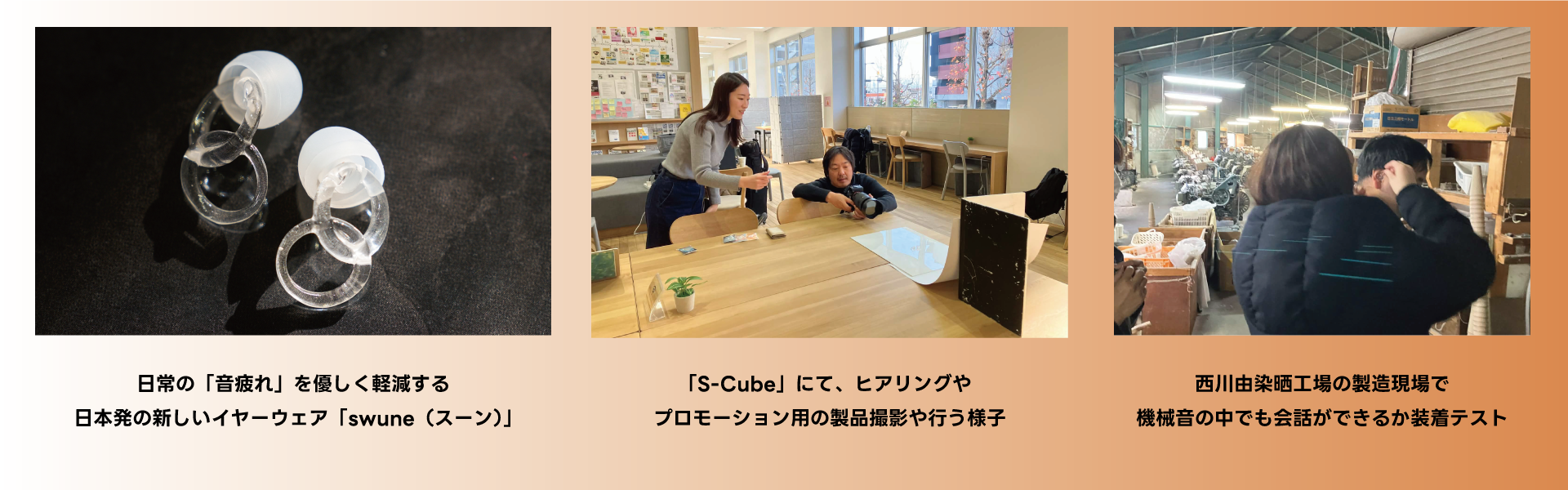 従来の耳栓は音を完全に遮断してしまうため、作業中のコミュニケーションが取りづらいという課題がありました。しかし、swuneを1週間試用した従業員の方からは「耳栓と同程度に機械音の負担が減るのに、着けたまま従業員同士で会話ができる」という驚きの声が寄せられました。オフィスなどの静かな環境だけでなく、騒音の多い製造現場の作業効率やコミュニケーション維持にも大きく貢献できるという「新たな価値」が実証されたのです。